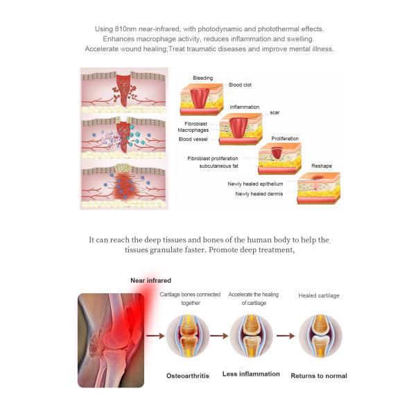 A: RED and INFRARED combination is helpful for wound recovery and bone repair